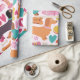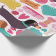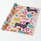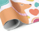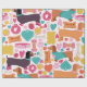Um padrão vivo e colorido que apresenta pratos em camisolas, rodeados por corações, ossos, pegadas, coleiras e guloseimas. As cores vibrantes e ilustrações encantadoras celebram o espírito alegre dos cães.