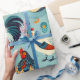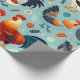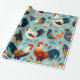 Galinhas e Galos - Design de padrões sem costura. Animais de exploração; Galo e Design gráfico de galinhas. Branco, azul, vermelho e laranja.