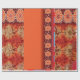O design apresenta um design têxtil detalhado, provavelmente destinado ao tecido ou papel de parede. Aqui estão os detalhes: ・ Esquema de cores: Predominantemente laranja, vermelho e branco. ・ Faixa vertical central: Uma cor laranja sólida corre a meio. ・ Padrões de revestimento: iludir os motivos florais e os detalhes do ornamentado em tons de vermelho, laranja e branco, com alguns elementos semelhantes a rendas. ・ Fundo: Um olhar aflita com salpicos de vermelho sobre uma base mais escura, dando-lhe uma sensação de safra. A disposição simétrica e a combinação de motivos florais e ornamentados tornam-na visualmente atraente e adequada para várias aplicações em moda ou decoração de interiores.