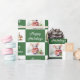 Camundongos de Natal em aquarela com fundo branco com texto de cartões de natal em verde.