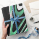 Esta impressionante pintura de espiral abstrato preto e verde de mármore apresenta um padrão Groovy com uma retro linha ondulada com uma reviravolta moderna. A peça de arte é cheia de folhas verdes metálicas falsas, preto, cinzas e cores brancas. As linhas ondulantes dão-lhe uma ilusão psicodélica de fundo estético. É uma peça de arte fluida, moderna, criativa e vibrante que traz as vibrações dos anos 70 para a pintura criativa.