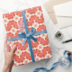 Este presente decorativo tem um aspecto pintado à mão. Isso se originou de um padrão original de azulejo alterado digitalmente para criar esse papel. Este padrão boêmico se ondula pelo papel em linhas onduladas. Este papel pode ser para um feriado ou qualquer ocasião, já que o padrão é abstrato. As cores incluem tons de vermelho e ferrugem em fundo branco. É perfeito para a casa de campo ou fazenda. Esta design vem do azulejo de Oregon Fay Jones Day.