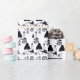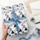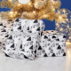 Chapéu de neve, esquis, óculos e flocos de neve em papel de embrulho. Perfeito para uma festa do dia da neve.
