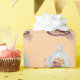Uma variedade de doces coloridos e deliciosos e bolos são exibidos sob uma cúpula de vidro, descansando sobre uma base de madeira. O arranjo inclui uma variedade de guloseimas, como cupcakes e fatias de bolo.