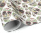 O Spooky Halloween ou Day of the Dead wrapper paper apresenta um padrão de crânios coloridos de açúcar do Dia de los Muertos em um fundo branco.