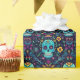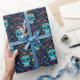 Este papel de embrulho apresenta um design resplendente inspirado no Dia de Muertos. Contra um fundo azul marinho profundo, uma tapeçaria de elementos se desdobra em uma tela mesmerizadora. Crânios de açúcar turquesa, enfeitados com padrões intrincados e detalhes delicados, ganham palco central. O seu olhar enigmático e as suas linhas metidas transmitem uma sensatez e uma passagem do tempo. As marigoldas de ouro explodem como gotas de luz solar, suas pétalas dançando em celebrações jubilantes, cercando os crânios de açúcar com uma aura de calor. Um espectro de elementos florais, que vão de púrpuras ricas a azuis calmantes, tece através do design, simbolizando a natureza cíclica da vida e da morte. A justaposição de cores vibrantes ao pano de fundo escuro cria um contraste impressionante, incorporando a interação entre celebração e luto, vida e morte. Esse papel embrulho exude um senso de reverência e continuidade, fazer-o uma escolha pungente para comemorar os falecidos e abraçar o eterno ciclo das estações da vida.