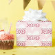 Elevem seu presente de Dia de os namorados com papel de embrulho personalizado. Design apresenta um design XOXO fofo junto com corações em uma paleta vermelha, rosa e branca. Personalize o modelo com sua mensagem personalizada. © Kimbellish, LLC