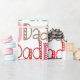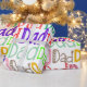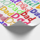 Este papel de embrulho tem a palavra "Pai" repetida em diferentes fontes e cores diferentes em todo o design. Divertido e brilhante.