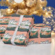 Uma pessoa se senta confortavelmente num sofá com um cachorro, ambos muito relaxados sob a frase "Dia Perfeito para Desperdiçar Longe".