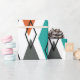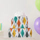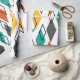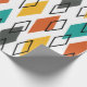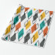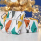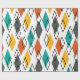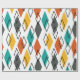 Este papel de embrulho tem um design moderno do século médio de diamantes espalhados em laranja, ouro, turquesa, cinzas e contornos em um campo branco