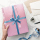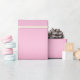 Papel de embrulho elegante com brilho rosado cintilante, a partir de cima, sobre um fundo rosado.