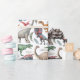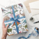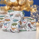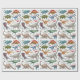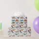 Papel de embrulho de aniversário com tema Jurássico, com fundo branco que pode ser mudado para qualquer cor, e dinossauros com aquarelas, rochas, folhagem e grama.