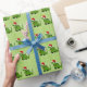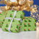 O dinossauro verde em um chapéu do papai noel, com uma grinalda do Natal em torno dela é pescoço