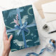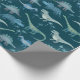 Muitos dinossauros azuis num fundo verde-negro. Tyrannosaurus Rex, Spinosaurus, Stegosaurus, Diplodocuments e Tricerátops. Perfeito para paleontólogos carentes! Arte original de Nic Squirrell.