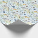 Papel de embrulho personalizado para um menino Aniversário, com dinossauros coloridos, T rex, Brontossauro e muito mais, com plantas férreas e pegadas de dinossauro sobre fundo azul claro. Personalize facilmente o texto e o número do Aniversário. - Kate Eden Art