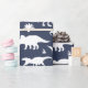 Papel De Presente Dinossauros Cachorros Dinos Padrão em Azul e Branc