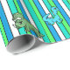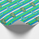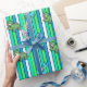 Papel De Presente Dinossauros com risca azul e verde - Aniversário