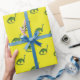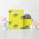 Um padrão animado com dinossauros verdes percorrendo um fundo amarelo alegre, perfeito para adicionar um talento lúdico e pré-histórico ao seu presente. Esta design é certamente capaz de cativar a imaginação.