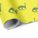 Papel De Presente Dinossauros verdes em padrão amarelo