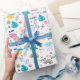 Este dinossauros brancos e papel de embrulho de unicórnio é o papel de embrulho mais mágico para o seu presente especial.