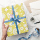 Papel De Presente Disias Florais Amarelas E Brancas Padrão Invisível