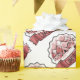 Tenda, árvores e faixa "Acampamento". Distintivo desenhado à mão com tonalidade de aquarela vermelha