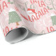 Diversão do Natal Carol Papai Noel embrulhando papel. Design apresenta o personagem de Papai Noel com o design de guião de tipografia "Fa La LA", árvore de natal e holly para criar um design de papel de embrulho divertido e festivo. Design por Moodthology Papery.