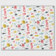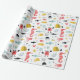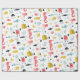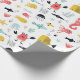 Este belo papel de embrulho apresenta um fundo branco com criaturas agudas do mar de cartoons, incluindo peixes vermelhos, amarelos, pretos e azuis-claros, caranguejos vermelhos divertidos, estrelas-do-mar e algumas algas.