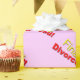 Linhas de "Finalmente Divorciado" em um plano de fundo rosa.