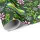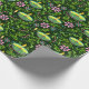 A Green Diwali Wrapping Paper Patterned In Green Candles And Pink Florals