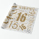 O texto "Feliz Aniversário Doce 16" em ouro com efeitos brilhantes forma esta elegante palavra de design de papel embrulho em nuvem. O fundo branco é opcional e pode ser alterado se preferido. Procure ID265 para ver outras opções de cores e produtos adicionais com este design.