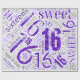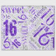 O texto "Feliz Aniversário Doce 16" em roxo com efeitos brilhantes forma esta elegante palavra de design de papel de embrulho em nuvem. O fundo branco é opcional e pode ser alterado se preferido. Procure ID265 para ver outras opções de cores e produtos adicionais com este design.