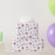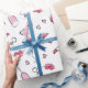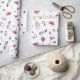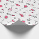 Papel de embrulho branco com rabiscos com tema nobre em preto, rosa pálido e rosa quente para um chá de panela ou festa de solteira. O padrão de rabisco apresenta anéis de diamante, coquetéis, lábios brilhantes, balões, corações e batom.