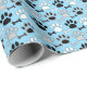 Papel De Presente Dog Paw Prints and Bones Pattern Blue
