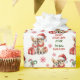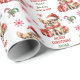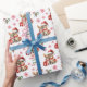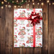O padrão repetido neste papel de embrulho de Natal é de dois pequenos cães chihuahua castanhos. Cada um está vestindo um colar vermelho de Feriado, e um está vestindo um chapéu vermelho e branco de Papai Noel. Pacotes de presentes embalados de forma breve se sentam ao seu lado. O texto vermelho diz MERRY CHRISTMAS", com seu nome escolhido e sua assinatura abaixo. Outras imagens incluídas no padrão incluem flocos de neve decorativos vermelhos e canas doces.