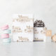 Papel de embrulho de Natal elegante, com as palavras "MERRY CHRISTMAS" em caracteres de ouro maciço, adornado com um belo motivo floral e espiral.