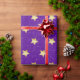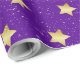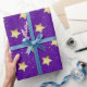Papel De Presente Douradas estrelas em roxo com flocos de neve