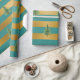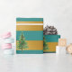 Papel De Presente Douradas faixas verdes elegantes, pinheiros, feria