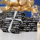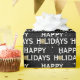 Texto de Feliz Feriado com folha de ouro arco de Natal sobre fundo preto com flocos de neve. A cor de fundo pode ser alterada.