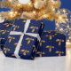 Papel De Presente Dourado e Marinho Holly de Natal Azul