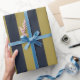 Papel De Presente Dourado Elegante e Marinho - faixas verticais azui
