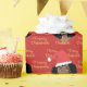 Celebre a época de férias com esta beleza natural e o seu chapéu festivo de Papai Noel sobre o seu cheio, fabuloso para. Beleza natural com colares pretos, encaracolados, em camadas e forros de ouro sobre fundo vermelho e folha de ouro "Feliz Natal".