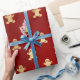 Papel De Presente Dourado Natal Gingerbread Man on Red