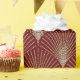 Tons Dourados e prateados, padrão geométrico do Art Deco sobre a cor vermelha escura e alterável do fundo.