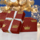Papel De Presente Dourado Rei Vermelho Turvo Rei Coroa Herádico Prín