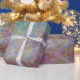 Dourado escrevendo cursivo sobre um fundo de roxo e verde. Perfeito para desacoplamento, artesanatos ou embrulhamento de presente. Por favor, verifique o modo de exibição de "costura" para garantir que ele seja aceitável.