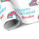 Personalize este gato bonitinho no papel de embrulhamento do segundo aniversário de chapéu com o nome do seu filho.