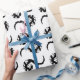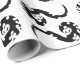 Este elegante, porém brincalhão, papel de embrulho apresenta um filme asiático de dragões dançarinos alegres num esquema de cores simples de preto e branco.