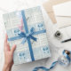 Feliz feriado, feliz qualquer dia! Fundo azul com libélula, arco azul e balão de calor azul.