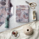 Dragonflies com flores roxas e verdes cobrem este design inspirado em vintage com um fundo leve de escrevendo cursivo, jornal de vintage, e elegantes flores e caules estampados roxos de beringela. Perfeito para trabalho de arte de dissociação, encapsulamento de presente ou artesanatos de papel. Consulte a visualização da imagem "costura" para verificar se ela é aceitável.